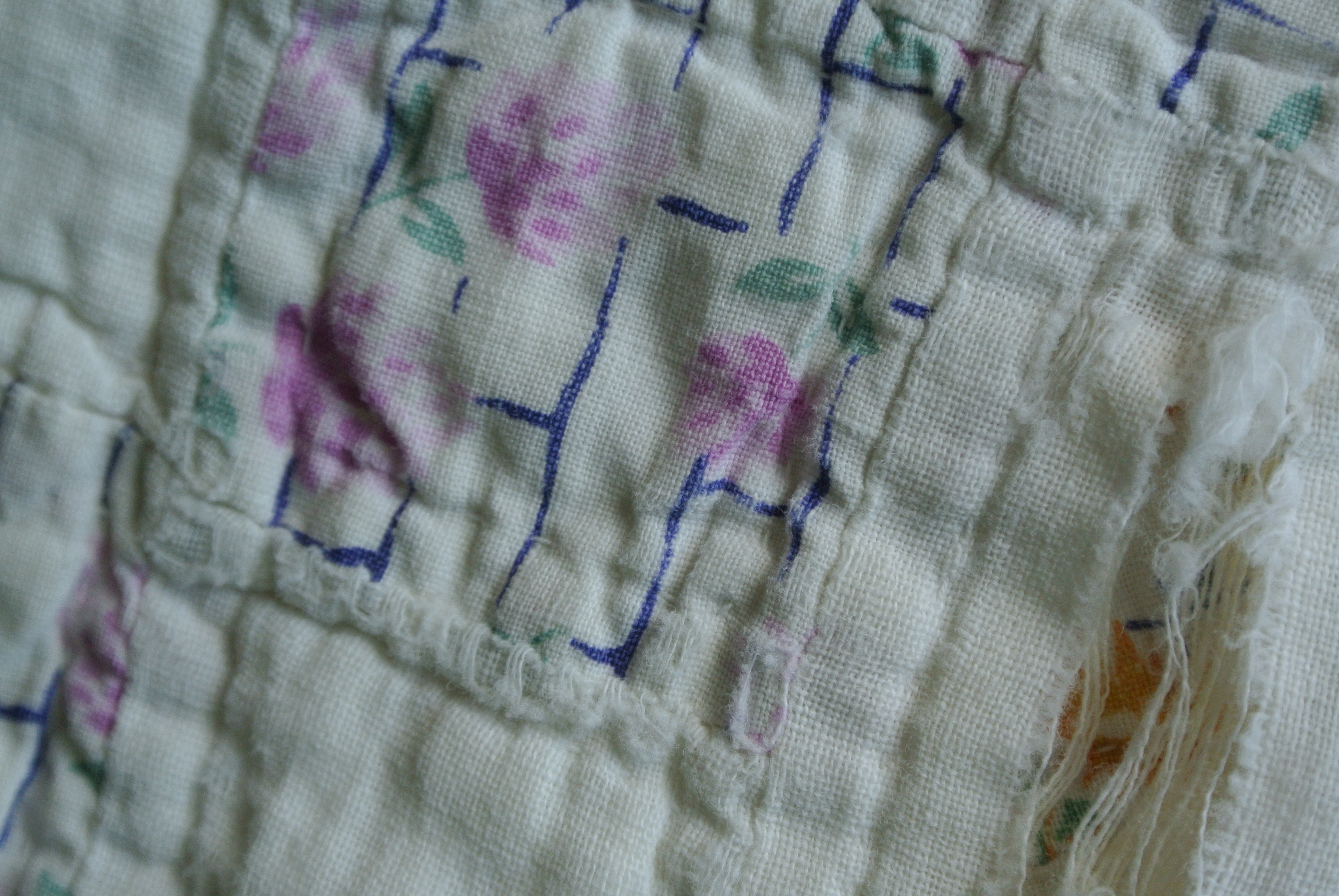 **Printed feed sacks were produced from the 1920’s to the late 1950’s and held dry goods ( flour, sugar, & grain). Resourceful women fashioned them into quilts and clothing for themselves & their